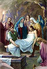 Sobre o monte Calvário desceu, com a tarde, um profundo silêncio. A dor já não tem lágrimas, nem palavras, enquanto, envolvido no branco lençol, o corpo do mais insigne dos filhos do homem é deposto no sepulcro escavado na rocha. José de Arimateia, o bom discípulo, cumpre os últimos gestos de piedade humana e de religiosa devoção para com o Mestre. Agora o Rei dorme, vigiado pelos guardas, mas não está sepultada com Ele a destemida esperança. Sim, porque depois do Seu profundo tormento e de se ter oferecido em expiação, Ele verá a luz. E terá a uma longa descendência (cf. Is 53,10-11). No coração da noite a semente prepara-se para brotar; o ar perfuma-se de uma nova primavera: eis o pressentimento ardente de Maria Madalena e da outra Maria... que numa santa ansiedade aguardam no jardim.